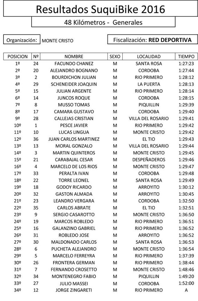 En una jornada soleada se desarrolló una edición más del Suqui Bike y en esta oportunidad la sede fue nuestra ciudad. Con gran participación de corredores de toda la región se dieron cita para formar parte de una competencia muy convocante y prestigiosa. La plaza Sarmiento recibió a una gran cantidad de ciclistas que disfrutaron en familia de una jornada de camaradería y deporte. RESULTADOS RURAL BIKE MONTE CRISTO