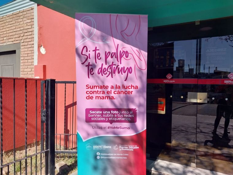Desde la Municipalidad de Monte Cristo junto al area de Prensa, Difusión y Protocolo invitan a todos los vecinos y vecinas a sumarse a la Lucha contra el Cancér de Mama. Durante el mes de Octubre vas a encontrar en las diferentes dependencias municipales, el banner de la campaña, en el que podrás tomarte una fotografía, subirla a tus redes sociales, etiquetarnos y de esa manera ser parte de la lucha y detección temprana. Viralicemos las redes sociales utilizando el hashtag #YoMeSumo para decirle al cáncer de mama: Si te palpo, te destruyo. "No estas sola. Por ti, por mi y por todas nosotras.