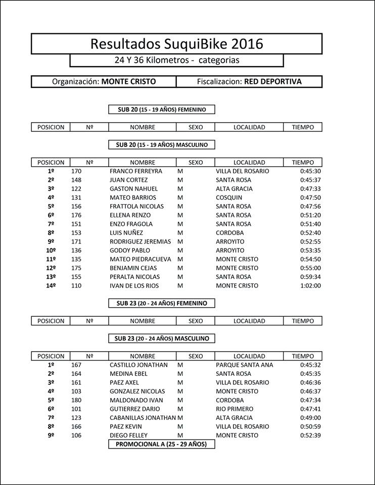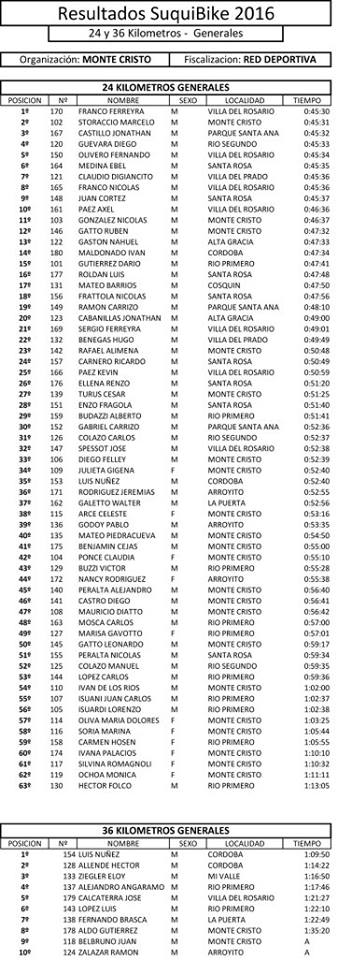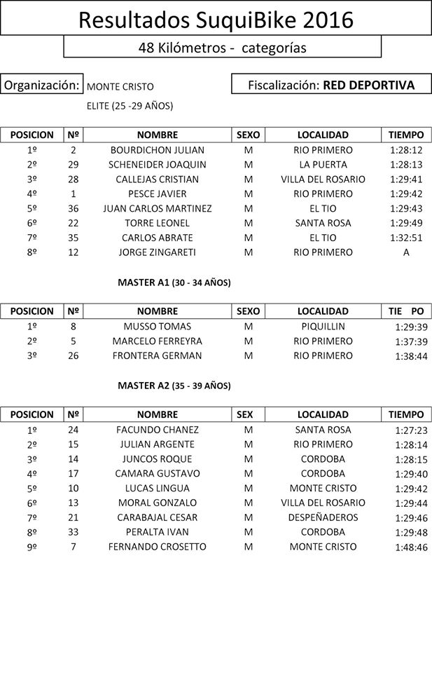En una jornada soleada se desarrolló una edición más del Suqui Bike y en esta oportunidad la sede fue nuestra ciudad. Con gran participación de corredores de toda la región se dieron cita para formar parte de una competencia muy convocante y prestigiosa. La plaza Sarmiento recibió a una gran cantidad de ciclistas que disfrutaron en familia de una jornada de camaradería y deporte. RESULTADOS RURAL BIKE MONTE CRISTO